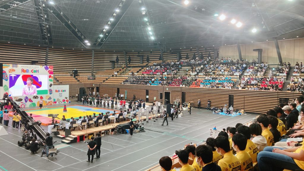 2022年6月12日、東京都の大田区総合体育館でNHK学生ロボコン2022が開催された。ABUはオンラインが確定しているが、国内大会の有観客開催は3年ぶりだ。参加校の応援団はもちろん、一般観戦も開放された。デバプラ取材班も人数は絞り(とはいえ昨年の高専ロボコンよりは増員できた)、久しぶりの現地参戦だ。