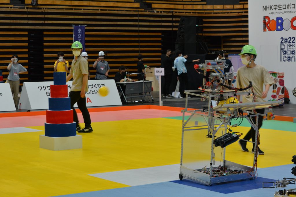 2022年6月11日(土)、大田区総合体育館で「NHK学生ロボコン2022」前日テストランが開催された。十分に幅を取ったチームピットや人の集合を回避するためのモニタなど、随所に感染対策を感じるフィールドデザインになっている。