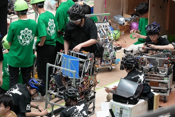回路班の渡会さんは「今年は基盤の不良が多く、ずっと手に汗握っていた。動け、と願いながら修理を見守っていた」と話す。高い目標に向けた挑戦にはトラブルはつきもの。とはいえ、時間は刻々と迫ってくる……。そんな不安な状態を切り抜けられたのは、密なコミュニケーションで培っていたチームワークと、メンバーの「ロボコンが好き」という思いがあったから。心配と楽しみ、半々の気持ちで、チームは当日を迎えた。