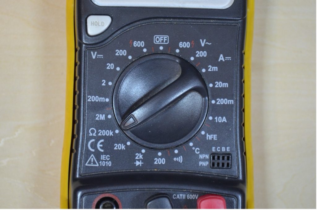 デジタルテスターの多くは電圧・電流・抵抗の測定だけでなく、ダイオードのチェック、トランジスタの増幅率測定、熱電対による温度測定など、多様な機能が搭載されています。