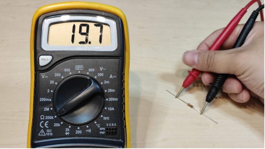 抵抗値は19.7[kΩ]と表示されました(この抵抗の公称値は20[kΩ]です)