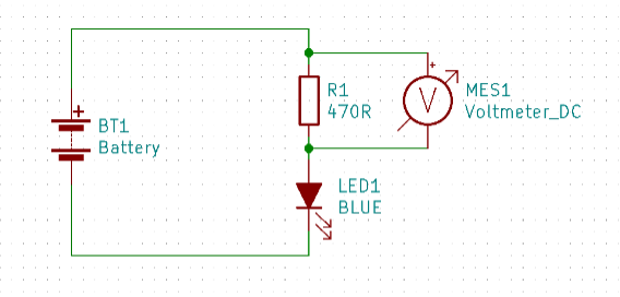 まずは最も使用頻度の多い、直流電圧(単位:[V] ボルト)の測定です。直流電圧の測定は、バッテリやACアダプタの電源電圧・極性の確認、LEDやセンサの状態確認など、あらゆる場面でおこなわれます。